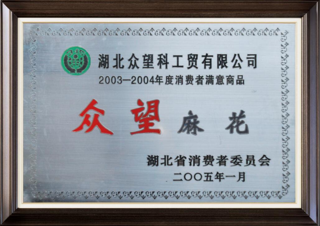 2003-2004年度湖北省消費(fèi)者滿意商品